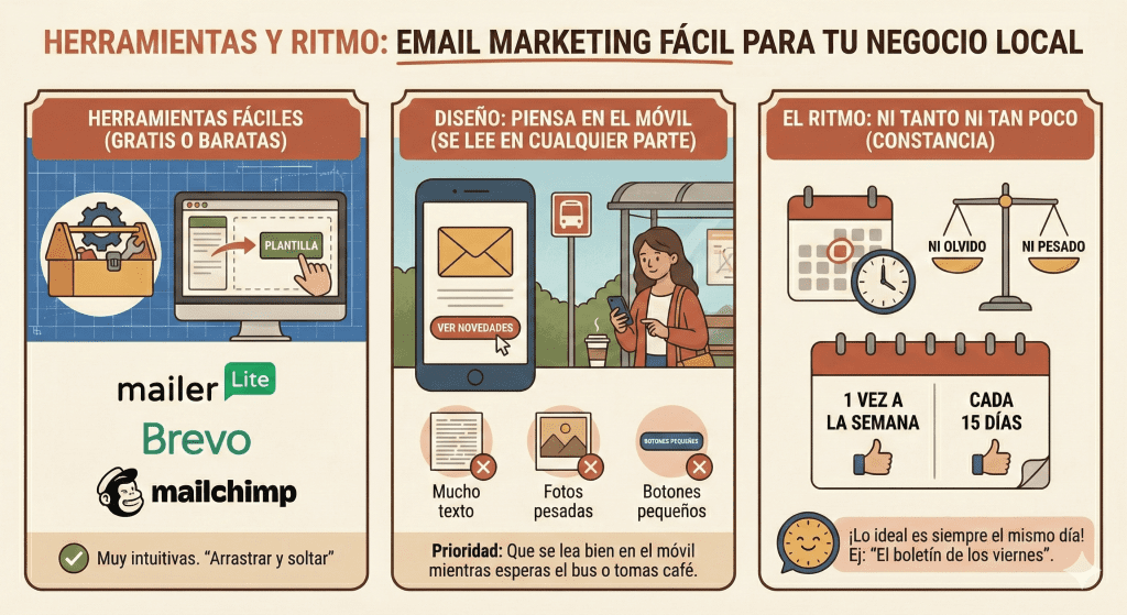 El email marketing para un pequeño comercio no va de enviar «spam» a lo loco. Va de ser ese amigo que te avisa cuando llega el género bueno a la tienda o cuando hay un evento en el barrio que no te puedes perder.